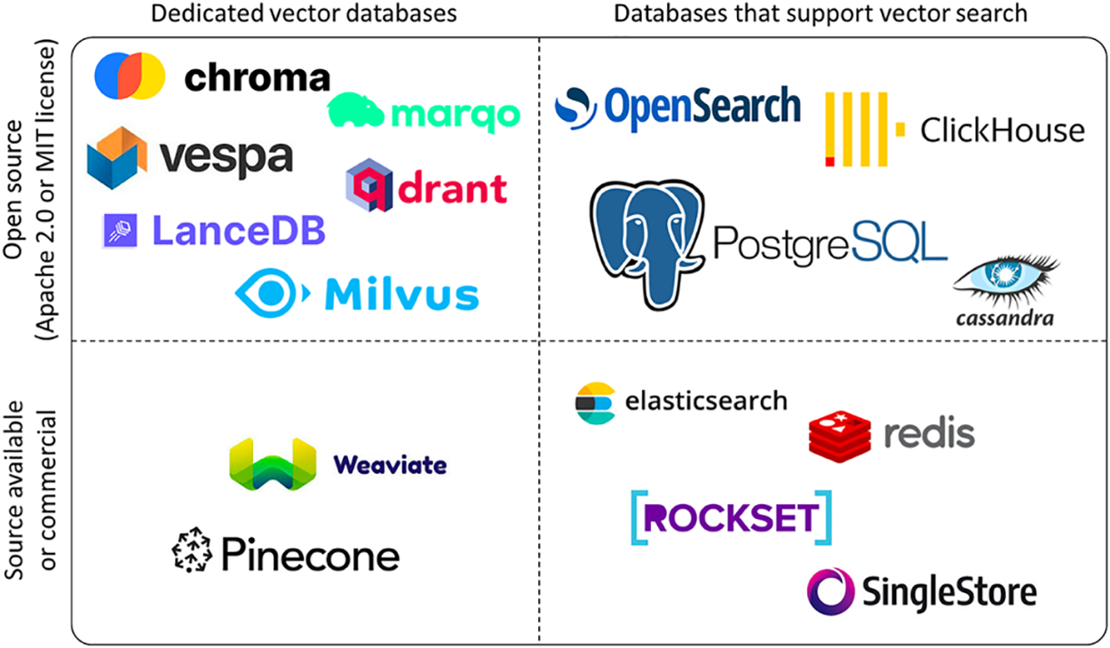 Fig. 3. Dedicated vector databases, tools, and databases that support vector search.