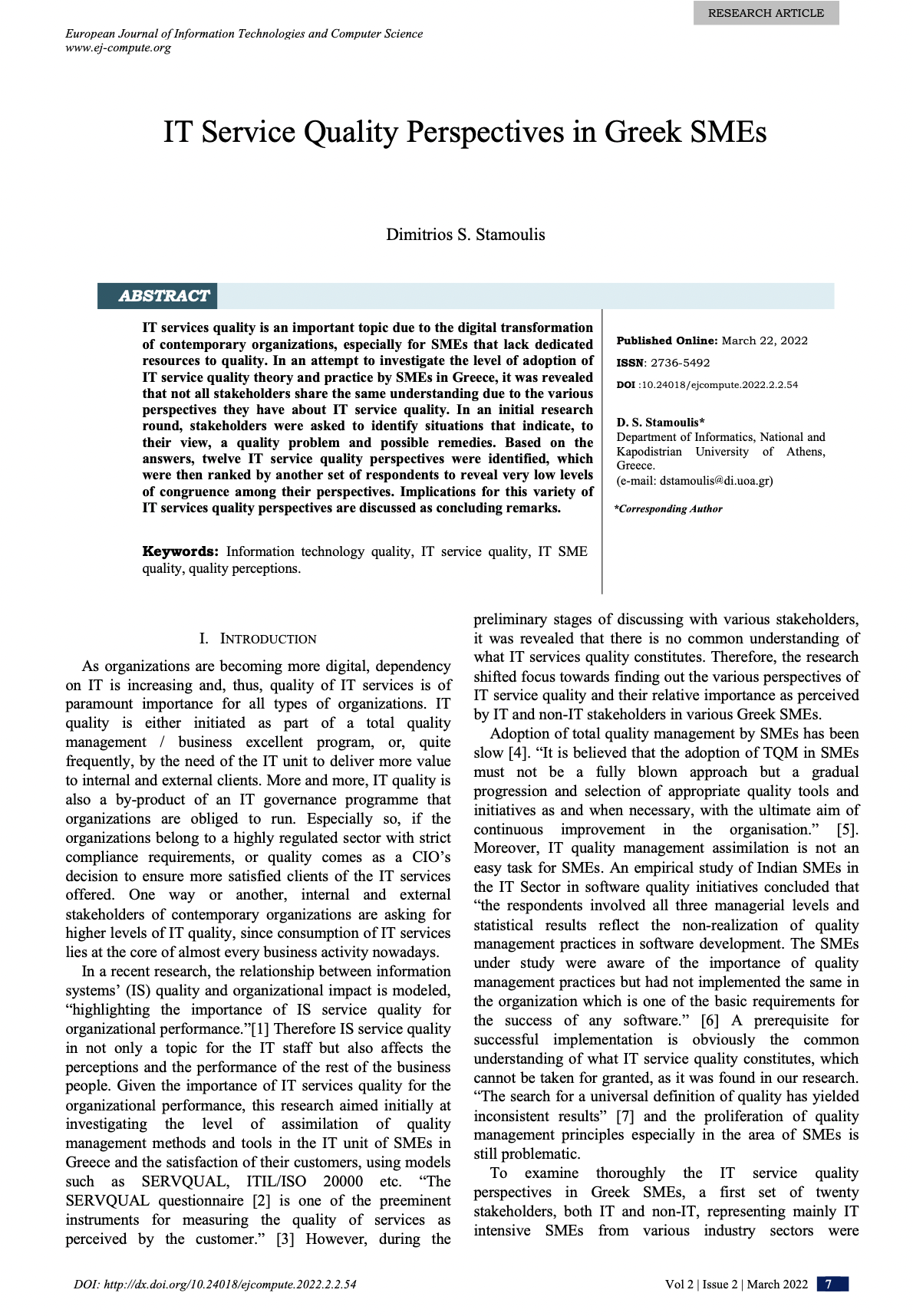 IT Service Quality Perspectives in Greek SMEs